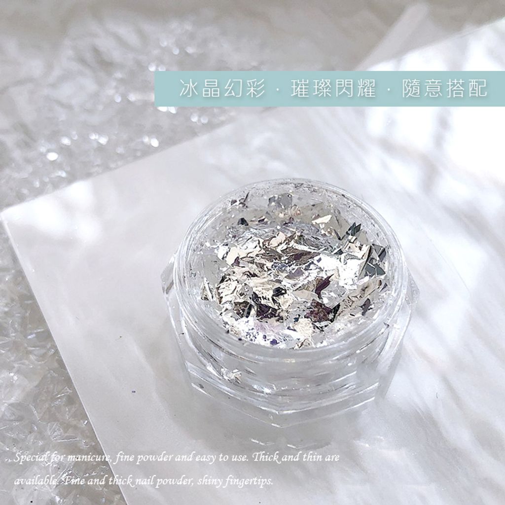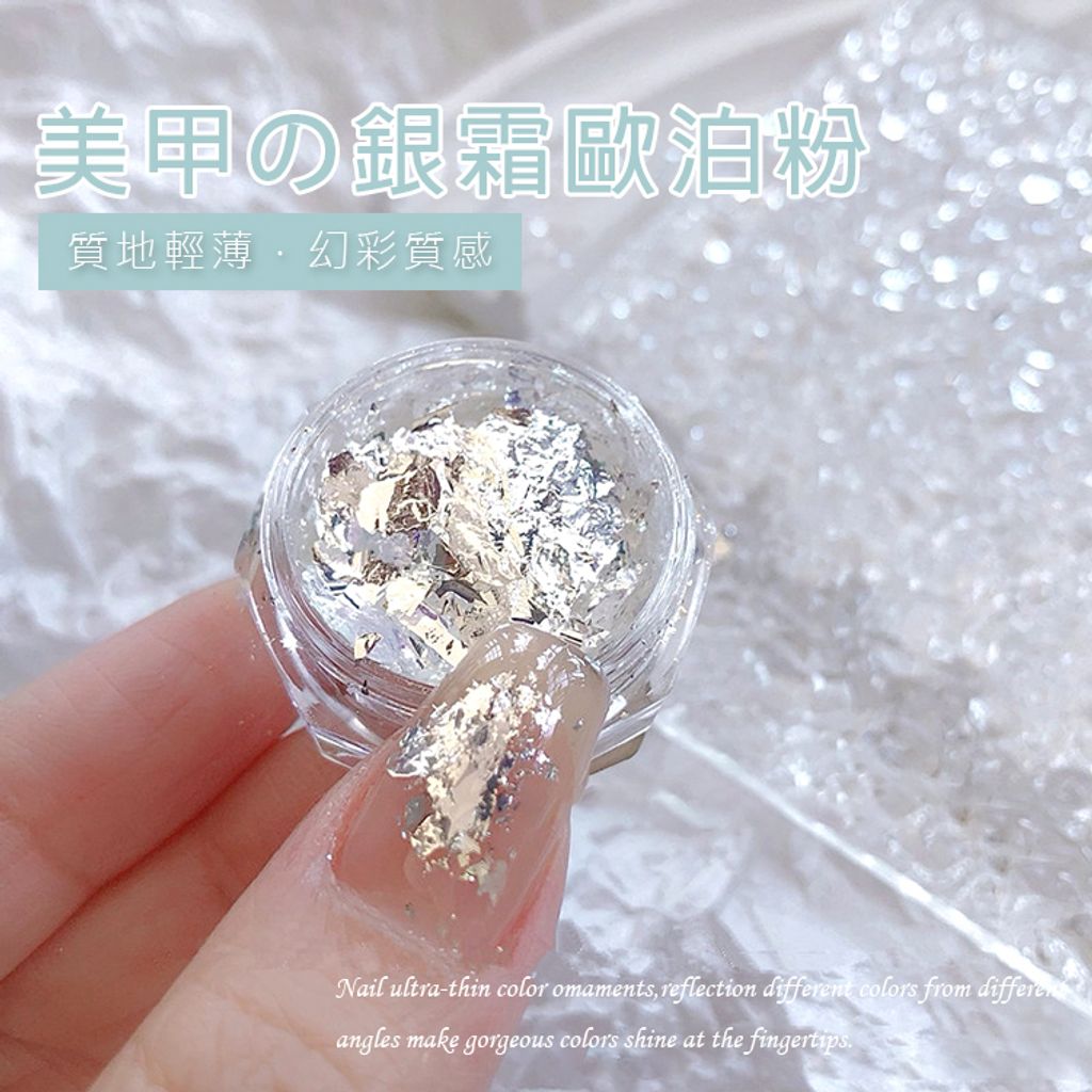 美甲 AK銀霜歐泊粉 雲錦粉 美甲素材 銀白粉片 亮片 極光夢幻 超薄